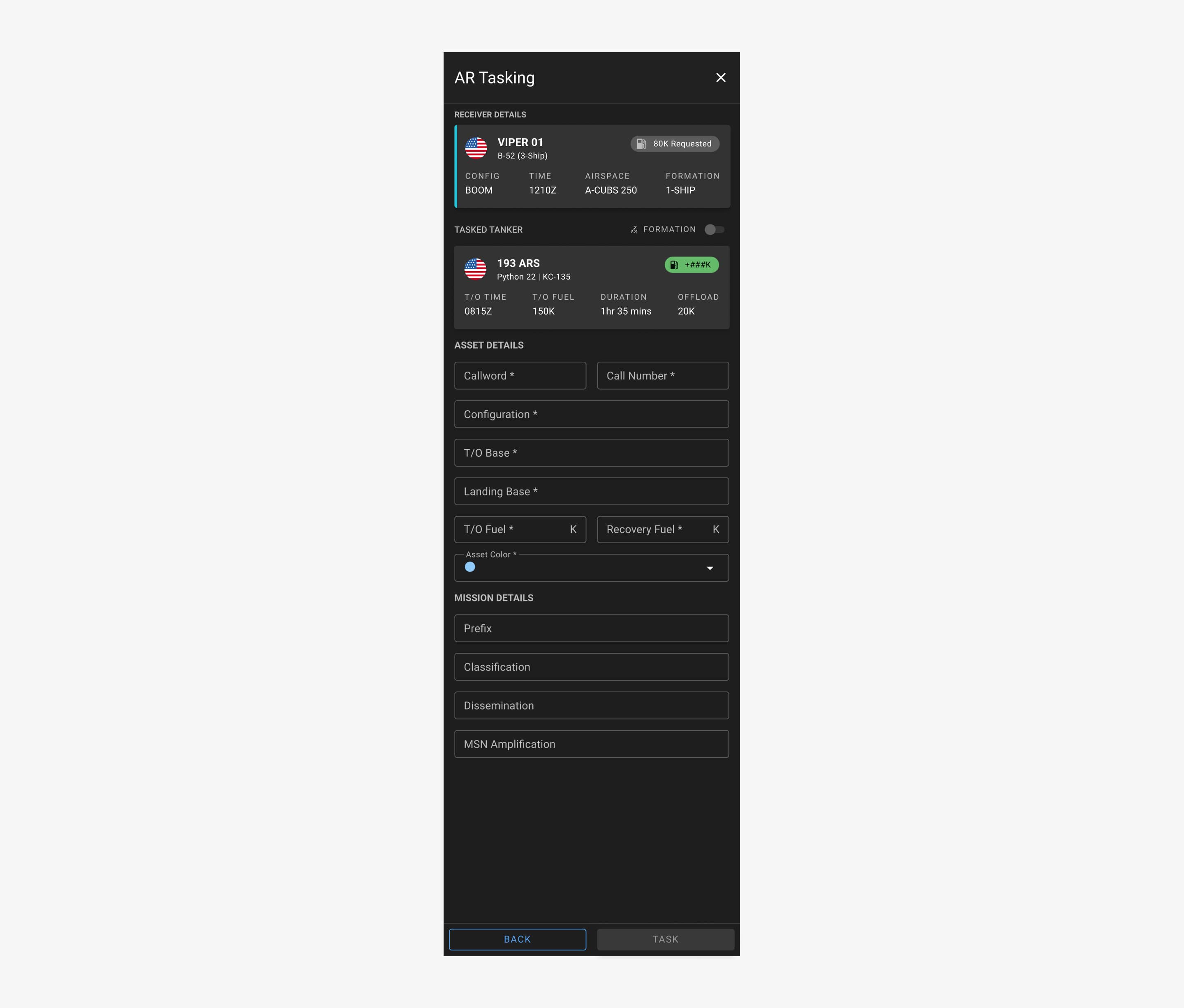 The solution also introduced persistent inputs for shared mission attributes, reducing repetitive data entry and minimizing errors across tasks. By aligning the drawer’s structure with how ARCT users think about routes and tasking, the experience reduced fragmentation and eliminated unnecessary context switching.