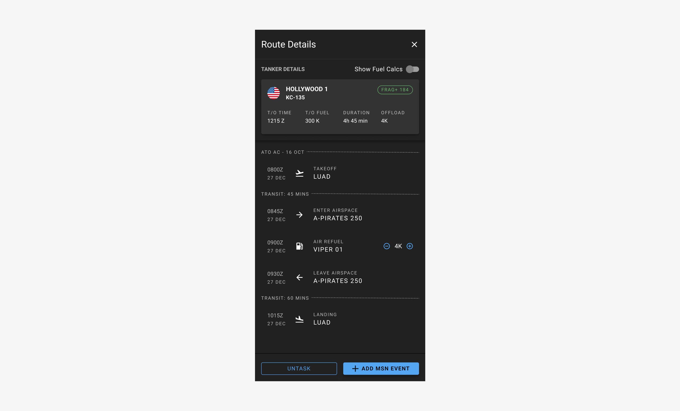 By integrating Jigsaw more deeply with Slapshot and surfacing mission-critical fields directly within tasking and route views, tanker planning time was reduced from approximately eight hours to two hours. This enabled faster decision-making and improved resource coordination during mission planning.